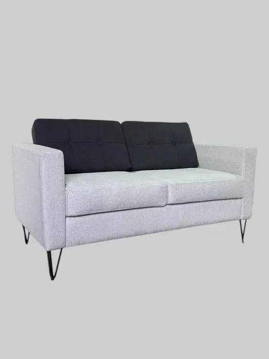 ספה דו-מושבית מעוצבת בסגנון מודרני עם טאצ' קלאסי – ריפוד דמוי עור שחור חלק ועמיד, גב מרופד בכפתורים לתחושת יוקרה, ומושב רחב ונוח. רגלי מתכת דקות ואלגנטיות מעניקות יציבות ועיצוב נקי. מושלמת לחללי המתנה, משרדים או פינת ישיבה מעוצבת בבית.