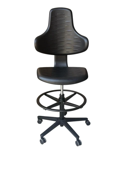 כסא מעבדה עם חישוק וגב פלסטיק גבוה